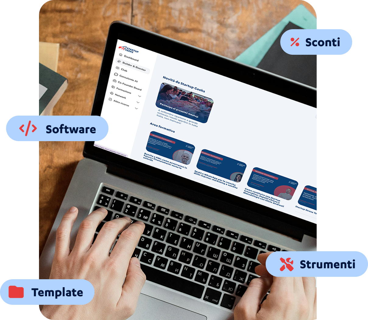 Le stesse risorse che usano i 2.500+ founder dei nostri percorsi. Testate. Organizzate. Pronte da usare.