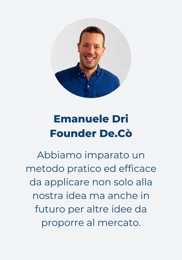 Il nostro progetto ora è un'azienda di oltre 25 persone, che ha già contribuito alla nascita di oltre 700 startup e aiutato grandi corporate come Eni, NTT Data e ItalDesign a sviluppare un mindset e un approccio più innovativo al proprio interno.