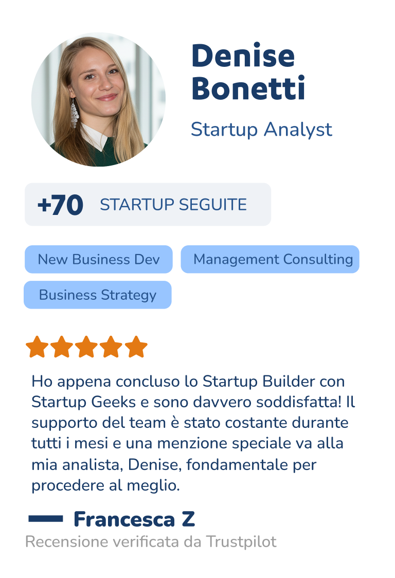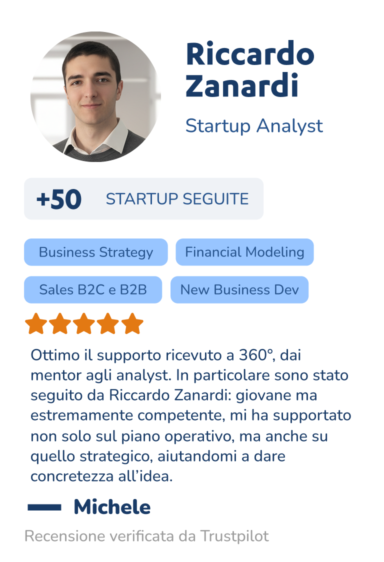Affiancamento costante di un Startup Analyst dedicato, che ti guiderà in ogni fase.